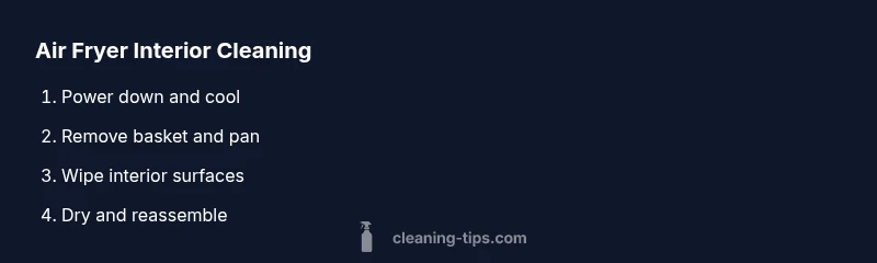 Can you clean inside of air fryer? Yes, and doing so regularly helps prevent stubborn grease buildup, reduces odors, and maintains even heat distribution. According to Cleaning Tips, small routines add up: wiping after cooking greasy foods reduces buildup and helps maintain airflow. A clean interior also limits cross-contamination between different foods, especially when you cook items with strong flavors. Over time, residue can harden into a crust that is harder to remove and can affect nonstick coatings if you scratch them. The goal is to remove food particles and oil while safeguarding the nonstick surface and electronic components. When you’re done, you’ll notice less smoking, less smell, and better overall results.