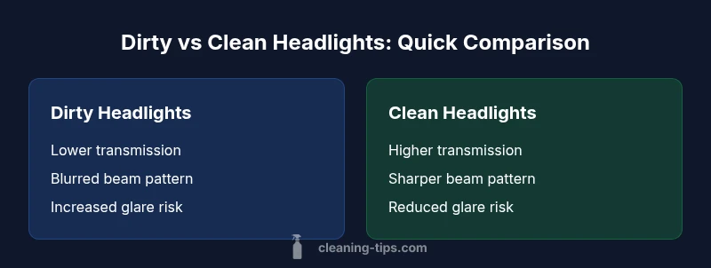 When you ask compared to clean headlights approximately how effective are dirty, the answer hinges on light output, beam pattern, and glare. Dirt and oxidation on headlight lenses scatter light, reduce transmission, and create hazy beams that substantially lower nighttime visibility. According to Cleaning Tips, even small surface accumulations can cut perceived brightness by noticeable margins, especially on poorly maintained lenses. The situation worsens under rain or fog, where glare from a dirty lens reduces contrast and makes it harder to discern pedestrians and road edges. Homeowners and renters should recognize that headlight cleanliness is not cosmetic alone—it is a safety and efficiency issue with real-world consequences.