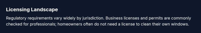 “Licensing for window cleaning is highly local; always check your city or state rules before hiring or forming a business.”