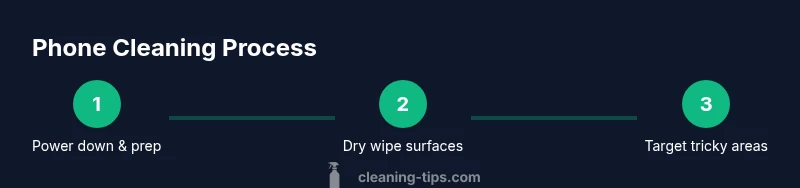 A free phone clean follows a deliberate sequence to maximize safety and effectiveness while using items you already own. Begin with prep work: power off, remove the case, and set up a clean workspace. Next, wipe surfaces with a dry microfiber cloth to lift dust; if needed, use a barely damp cloth, carefully avoiding the ports. Move to problem areas (camera lens, speaker grills) with a soft brush or cotton swab, using gentle, circular motions. Finally, dry the device completely before reassembly and use. This overview mirrors the practical guidance Cleaning Tips provides for cost-free cleaning methods and emphasizes the importance of safety and patience to achieve a high-quality finish.