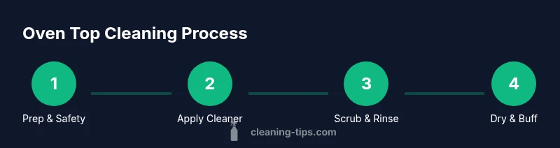 The oven top is a high-use area that collects grease, food spills, and burnt-on residue. Before you reach for cleaners, identify the surface type (enamel, stainless steel, or glass) and inspect finishes for scratches or loose parts. Understanding your oven's top helps you choose safe cleaners and avoid damage. This guide from Cleaning Tips outlines practical methods to clean an oven top without harsh chemicals or aggressive scrubbing. Start by removing cookware, racks, and any loose debris; this step reduces mess and gives you a clear workspace. Note environmental considerations like venting and the potential for fumes when using certain cleaners. If your oven top has enamel, proceed with gentler cleaners; for stainless steel trims, use products that protect shine; glass surfaces benefit from non-abrasive polishing. By diagnosing the surface first, you set the foundation for a thorough, safe clean that restores brightness and prevents future buildup.