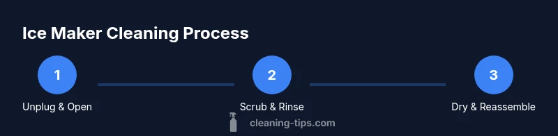 The core idea is to access all contact surfaces, loosen mineral deposits, rinse away residues, and dry completely. Begin with a clean workspace, ensure safety by unplugging, and follow a logical sequence: access and remove the ice bin, apply a cleaning solution to interior surfaces, scrub away buildup, rinse with clean water, and dry before reassembly. Proper drying prevents ice contamination and preserves equipment longevity.