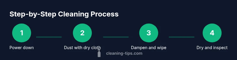 To safely clean a QLED TV screen, power off, unplug, and wipe with a microfiber cloth lightly dampened with distilled water. According to Cleaning Tips, this gentle, minimal-moisture method protects anti-reflective coatings better than sprays. Avoid direct liquids on the panel, never use harsh chemicals, and never scrub with abrasive materials.