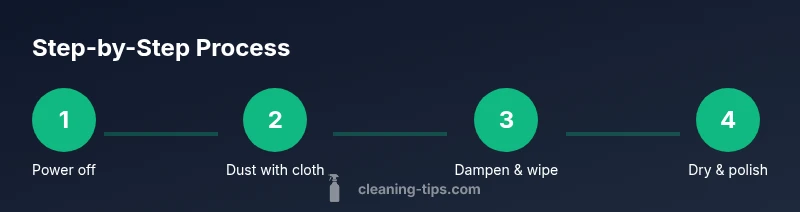 Preparation and safety are the primary considerations before you touch the screen. Always turn off and unplug the TV before cleaning to minimize the risk of electric shock and to ensure you can see smudges clearly. Start by removing loose dust with a dry microfiber cloth using gentle, straight strokes. If fingerprints or smudges linger, lightly dampen the cloth with distilled water or a screen-safe cleaner. Never spray liquids directly onto the screen; instead, apply them to the cloth to prevent liquid from seeping into seams or ports. Wipe the screen in a consistent direction to avoid circular patterns that can spread residue. After wiping, use a second dry microfiber cloth to remove any remaining moisture and to buff the surface to a streak-free finish. While cleaning, avoid excessive pressure near the edges where moisture could leak into the depth of the device. If stubborn spots resist, apply the cleaner to a cloth and test on a small area first. Finally, reassemble any accessories and plug the TV back in once the surface is completely dry. For durable coatings, a light annual wipe is sufficient in most homes, but adjust frequency based on usage and environment. The goal is to remove contaminants without compromising the screen’s protective coating or anti-reflective layer.