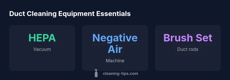 Duct cleaning is a targeted operation that combines dust containment, access planning, mechanical agitation, and verification. The question what equipment is needed for duct cleaning is best answered by grouping tools into four essential categories: containment and dust control, access and inspection, cleaning and agitation, and documentation. In residential settings, most ducts are accessible from a few points; in larger homes or multi-unit buildings, you’ll encounter longer runs that require more planning and gear. Before you buy or rent anything, map the ductwork: note supply and return paths, identify the most awkward elbows, and decide whether you’ll work from a single closet, a crawl space, or an attic. Containment is often the first safety layer: using plastic barriers and negative pressure reduces the spread of dust to living areas. Then you approach each run with the right brushing tools and suction to break and remove debris without damaging duct surfaces. Finally, you document the as-found conditions and post-clean results to verify improvement. Cleaning Tips emphasizes that the best results come from a well-coordinated kit rather than a grab-bag of tools. If contaminants like mold or pests are present, or if you are dealing with specialized metal or fiberglass ducts, you’ll need additional gear and possibly professional oversight.