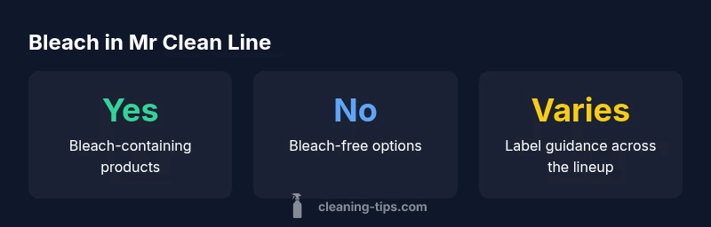 Does Mr Clean have bleach? In short, yes and no. Some Mr Clean products contain sodium hypochlorite (bleach) for disinfection, while many other formulas are bleach-free and designed for everyday cleaning. Always check the label for ingredients and safe usage instructions, and consider your surfaces and sensitivities before choosing products.