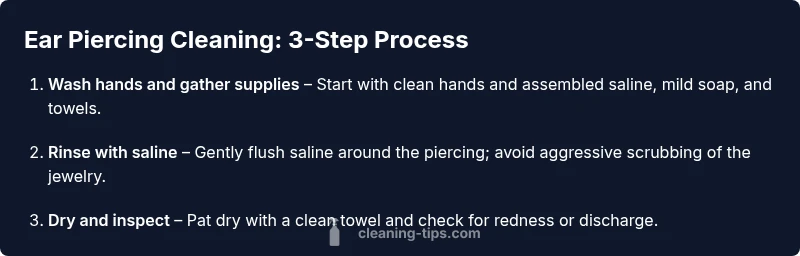 Healing a fresh ear piercing requires consistent care to prevent infection and ensure proper tissue recovery. The ear's delicate cartilage and surrounding skin can become irritated by bacteria if residue is left on the skin or jewelry. Regular, gentle cleaning helps remove crusties, reduce swelling, and keep the piercing comfortable during the healing window. According to Cleaning Tips, maintaining a regular cleaning routine lowers irritation and supports healing when done with appropriate solutions. The Cleaning Tips team found that gentle saline routines are less traumatic to healing tissue than harsher cleansers. In practice, this means focusing on the piercing site, not scrubbing the jewelry, and avoiding irritants like alcohol or hydrogen peroxide during the initial healing period. For homeowners and renters seeking a healthier home environment, this approach also reduces the chance of introducing bacteria from hands to the piercing. Always wash hands before touching the piercing and keep the surrounding area clean to minimize contamination. If you notice increasing redness, warmth, or discharge, stop cleaning and seek professional advice promptly. This careful approach helps you stay on track toward a healthy, comfortable piercing.