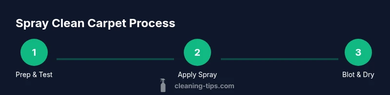 Spray cleaning your carpet offers a practical way to refresh a room without pulling out a full steam cleaner or renting equipment. The goal is to lift surface soils, reduce odors, and restore the carpet’s appearance between deeper cleanings. When you spray clean carpet, you apply a light, controlled mist of a carpet-safe solution and give fibers a chance to relax, rather than saturate them. This approach is particularly valuable in high-traffic zones, homes with pets, or rooms that can’t be shut down for hours. A properly executed spray clean can extend the time between expensive deep cleanings and keep your floors looking brighter. The technique also helps you target problem areas—stairs, entryways, and under furniture—where soils tend to accumulate first. As you work, ensure you test any cleaner on a small hidden area to protect color and fiber integrity. According to Cleaning Tips, using a measured spray reduces the risk of over-wetting and helps fibers rebound quickly after blotting. With the right tools and a steady hand, you can spray clean carpet effectively without soaking the padding or pad area.