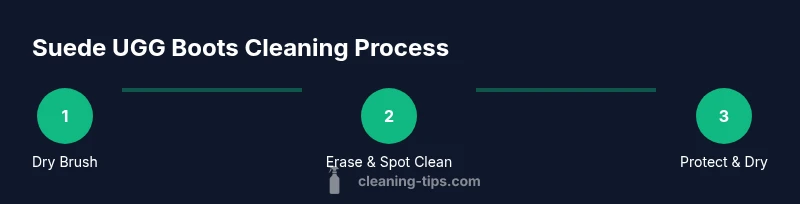 Cleaning suede UGG boots is a process that combines dry and damp methods to revive nap without leaving watermarks. Start with a dry brush to lift surface dirt, then address stains with a suede eraser or a tiny dab of cleaner on a cloth. The goal is to remove soil gently, preserve color, and restore softness. After cleaning, let the boots dry away from direct heat, then brush again to restore nap. This overview mirrors the practical approach used by Cleaning Tips in similar guides.