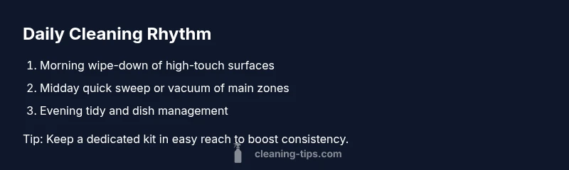 Starting with a concise set of daily tasks keeps cleansing manageable while still protecting health and home integrity. Begin each day with a quick 5- to 10-minute routine that targets high-traffic zones and touchpoints. Wipe down kitchen counters, the stove, and dining tables after meals; sanitize or disinfect only where appropriate and as directions indicate. In living spaces, run a lightweight dust-and-wipe cycle across surfaces, and vacuum or sweep common areas to prevent dirt from spreading. By pairing consistency with gentle products, you minimize exposure to harsh chemicals while maintaining a fresh home environment. Remember to ventilate rooms during cleaning and to store products safely out of reach from children and pets. Cleaning Tips suggests using a dual approach: daily light cleaning combined with a weekly plan for more thorough tasks. The aim is to create a rhythm you can sustain, not to overburden your schedule with endless chores.
