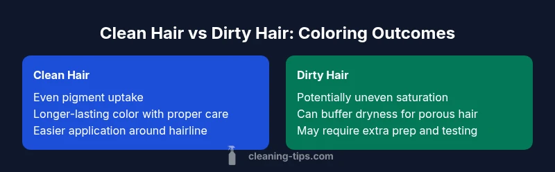 The core question—clean or dirty hair for coloring—shapes your prep plan. Hair surface, porosity, and sebum create microenvironments that determine pigment uptake. According to Cleaning Tips, the hair's oil burden can act like a barrier or a lubricant, depending on the dye type. Home colorists often ask whether washing before color is necessary. The short answer is: there's no one-size-fits-all rule; your decision should reflect porosity, strand health, and the product's formulation. In practice, many homeowners start with a clean scalp and hair to minimize impurities, then rely on a gentle oil residue to support conditioning. The goal is reliable pigment penetration without excessive swelling or damage. We'll explore how to assess your hair, what to expect from different states, and how to tailor prep steps for salon-grade results at home.