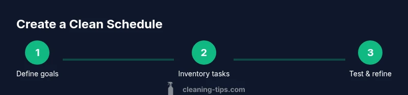 A clean schedule is more than a timetable; it is a simple system that reduces daily decision fatigue and keeps spaces consistently tidy. According to Cleaning Tips, a well-structured clean schedule reduces stress and helps households stay on top of chores without feeling overwhelmed. When families adopt a routine, you’ll notice fewer sporadic cleaning binges and more steady maintenance across rooms. A clean schedule clarifies what gets cleaned, when, and by whom, which increases accountability and turns cleaning into a predictable habit rather than a last-minute scramble. By mapping tasks to daily, weekly, and monthly cycles, you create a living plan that adapts to changing needs—birthdays, guests, busy work periods—without derailing progress.