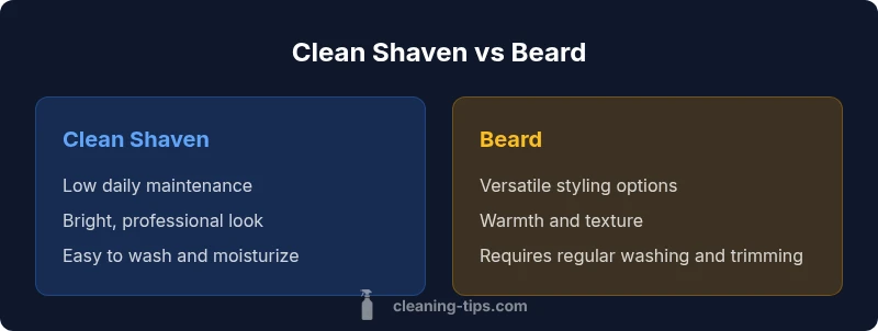 Quick verdict: Clean shaven and beard each suit different routines. According to Cleaning Tips, clean shaven offers the simplest maintenance and a brighter, more professional look, while a well-groomed beard adds warmth, texture, and style versatility. For busy schedules or hot climates, shaving usually wins on daily upkeep; beards shine in cooler months when you want a visible personal statement.