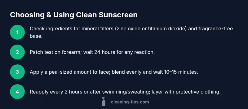 Discover how to choose clean sunscreen with mineral filters, read labels, patch test, and apply correctly for safer skin. A step-by-step guide from Cleaning Tips.