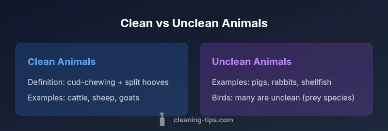 The difference between clean and unclean animals is a concept rooted in ancient dietary laws, notably within early ritual communities described in religious texts. The distinction guided what people could eat, sacrifice, and how certain animal products could be used in ceremonial contexts. For modern readers, the idea intersects with kitchen hygiene, food safety, and cultural literacy. According to Cleaning Tips, these classifications reveal how communities historically connected concepts of purity with daily routines, meal planning, and even property management. This block sets the stage for a practical exploration of how rules shaped everyday life while inviting readers to examine their own practices through a hygienic lens.