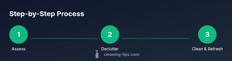 Walk through each room and identify the highest impact areas to tackle first. Define 1-2 clear outcomes (e.g., fresh kitchen counters, dust-free living room) and allocate time accordingly.