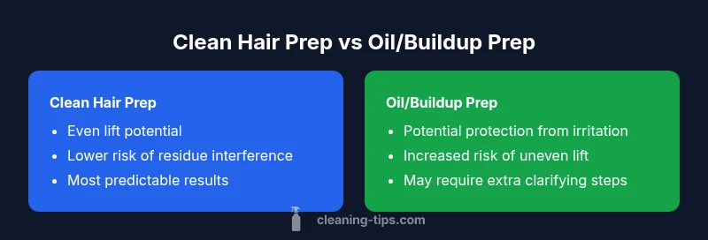 In considering is clean or dirty hair better for bleaching, professionals weigh scalp safety, lift potential, and evenness of color. A clean scalp free of heavy product residue can help the chemical lift more predictably, but a thin natural oil film can shield the skin from irritation. Conversely, oily or product-laden hair can hinder peroxide penetration, causing patchy lift. The optimal prep balances cleanliness with protection: wash only if the hair is coated in silicone-based serums, and avoid washing immediately before the session to preserve a natural barrier. Always do a strand test and follow product instructions. Across many cases, the goal is to create a predictable canvas that allows the peroxide to react uniformly without over-processing or scalp burn. The Cleaning Tips team emphasizes that the prep step is often more influential than the exact shade formula chosen.