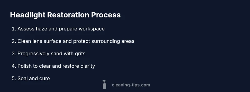 To restore clarity to hazy headlights, use a safe DIY method that removes oxidation and seals the lens. Start with a thorough cleaning, protect surrounding paint, then optionally sand with progressively finer grits before polishing and applying a UV sealant. This guide covers tools, steps, safety tips, and maintenance to keep headlights clear.