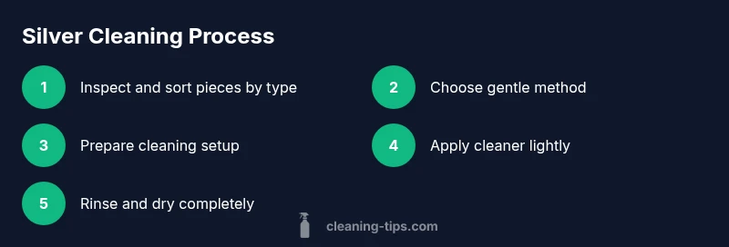 To clean silver effectively, start with a gentle tarnish remover such as a baking-soda paste or a mild silver polish. Test on a hidden area first, avoid abrasive scrubbing, and rinse well with clean water. Dry completely and store in a dry, airtight container to slow future tarnish over time.