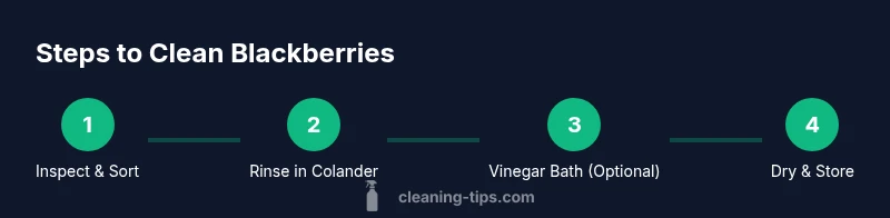 Blackberries are delicious when fresh, but their surface can hide dirt, dust, and tiny bugs from field to market. If you ask, how do you clean blackberries, the answer is a gentle rinse with cold water followed by careful drying. Cleaning them properly preserves flavor and texture while reducing the risk of mold and spoilage. According to Cleaning Tips, handling berries with a light touch minimizes bruising and color loss. This matters whether you eat them plain, add them to yogurt, or bake them into desserts. The goal is clean berries that stay intact and flavorful, not waterlogged fruit that spoils quickly. In the sections that follow, you’ll find practical methods, the role of a vinegar rinse, drying techniques, and storage tips designed to extend shelf life.