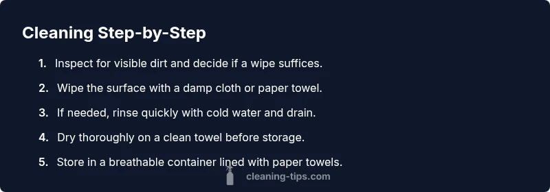 Common mistakes include soaking mushrooms in water, using soap, or stacking damp slices in a tight container. Soaking drains texture and flavor, while soap residue can impart off flavors and potentially be unsafe. Avoid piling slices while cleaning; instead, wipe each piece individually to minimize moisture transfer. If dirt is stubborn, a light rinse followed by immediate drying is acceptable, but never let the mushrooms stay wet while stored. Finally, always use clean towels and utensils to prevent cross-contamination.