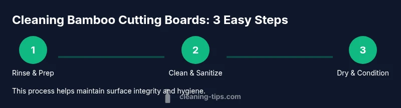 Bamboo cutting boards are popular in kitchens for their hardness, light weight, and gentle surface on knives. But because bamboo is porous, it can absorb moisture, odor seep, and tiny particles from foods if not cared for properly. This is where the practice of how to clean bamboo cutting boards matters: you need a simple, repeatable routine that removes residues without soaking the board or using harsh chemicals. According to Cleaning Tips, a consistent cleaning routine after each use helps prevent bacteria buildup and keeps the surface smooth for years. Start with a quick rinse under warm water to loosen crumbs, then proceed with a mild cleaning method described below. The aim is to sanitize, deodorize, and dry the board fully to prevent warping and cracking while maintaining food safety.