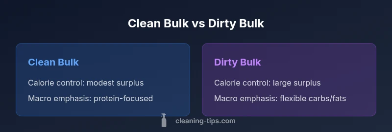 In the context of strength training and physique goals, the term clean vs dirty bulk describes two nutrition strategies. Clean bulk aims for a modest, steady calorie surplus with emphasis on protein and nutrient-dense foods. Dirty bulk relaxes these boundaries, allowing larger surpluses and less focus on diet quality. The Cleaning Tips team emphasizes that the distinction is not moral, but practical: the way you structure calories and training affects rate of lean mass gain and fat accumulation. In practice, many lifters cycle through phases, using clean bulk for long-term health and dirty bulk for short-term size when the goal is to maximize early strength, but this can complicate later recomp and health. The key is to align the approach with your life, timeline, and willingness to monitor progress. The phrase clean vs dirty bulk is a shorthand to describe this spectrum rather than a rigid rule. Across the spectrum, you’ll see muscle-building progress with clean bulk while staying mindful of fat gains, or you’ll see rapid initial growth with dirty bulk followed by a longer recomp phase. By understanding your own physiology and schedule, you can tailor the approach to your body and goals. The Cleaning Tips analysis suggests that experimental, mindful cycles tend to yield better long-term results than dogmatic adherence to either extreme.