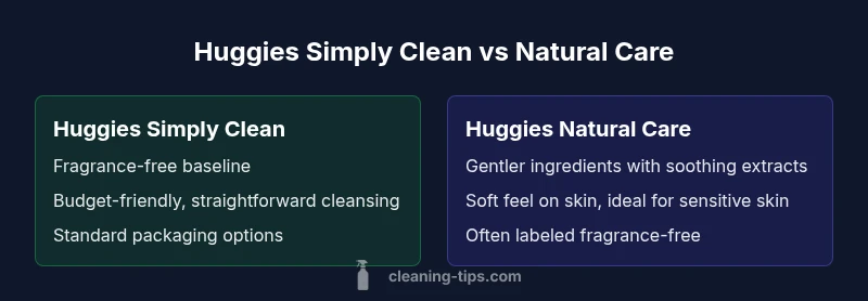 According to Cleaning Tips, the debate around huggies simply clean vs natural care centers on how each line approaches everyday diapering cleanup. Both products belong to Huggies' wipes lineup, but they target slightly different priorities. Simply Clean emphasizes a straightforward, budget-conscious option for families who want dependable cleanliness without extra bells and whistles. Natural Care, by contrast, leans into skin-friendly messaging, offering soothing extracts and a softer feel on delicate skin. For many households, the distinction comes down to tolerances for fragrance, sensitivity considerations, and how much “extra” you want from a wipe during a busy day. In this section, we’ll define what each line promises at a high level, so you can map your needs to the product attributes.