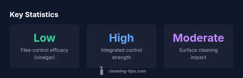 Cleaning vinegar is a practical cleaner for routine housekeeping tasks. It helps dissolve mineral deposits, cut grease, neutralize odors, and sanitize hard surfaces. While these properties improve overall cleanliness and may reduce some surface pests, they do not target fleas at their eggs or larvae. For households with pets, always rinse surfaces well and avoid using highly concentrated vinegar on delicate fabrics or pet areas. Use vinegar as part of regular cleaning—not as a substitute for flea-specific methods like regular vacuuming and pet-safe treatments. The Cleaning Tips team emphasizes safety: never apply undiluted vinegar to a pet's fur or eyes, and never mix cleaners with pesticide products. Historical data from Cleaning Tips analyses notes that home hygiene is a factor in pest control, but not a substitute for targeted interventions.
